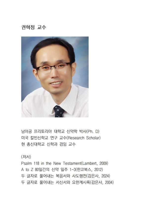 신약신학 분류 필진 작성자 정보 최고관리자 작성 작성일 2025.09.05 19:33 컨텐츠 정보 494 조회 0 추천 0 비추천 목록 본문 권혁정 총신대학교 겸임 교수 [이 게시물은 최고관리자님에 의해 2025-09-18 00:26:08 신학에서 이동 됨] 0 추천 0 비추천 SNS 공유 관련자료 이전 두 글자 요한복음 연재(4): 와서 보면 내가 누군지 알지롱! 작성일 2025.09.18 07:13 다음 두 글자 요한복음 연재(3): 핵폭탄 하나 투척할게요! 작성일 2025.09.15 01:02 댓글 0 등록된 댓글이 없습니다. Select File Upload File 목록