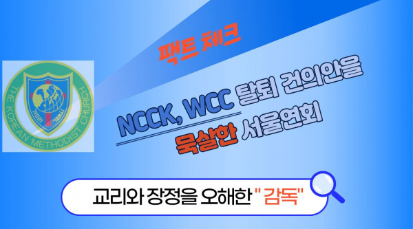 202649일부터 10일까지 양일간 꽃재교회에서 서울연회가 개최되었습니다. 필자는 서울연회 회원으로서 첫날, 김정민 목사(금란)를 비롯한 회원 52인의 서명을 받아 NCCK WCC 탈퇴 건의안을 상정하였습니다. 그러나 첫날 회의에서 서기의 보고에 따르면, 건의안심사위원회가 정족수에 미달하여 안건을 다루지 못했다고 하였으며, 둘째 날 재소집이 공지되었습니다.