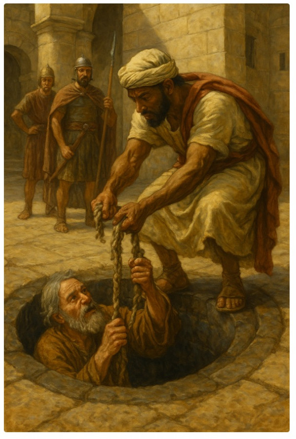 그는 하나님의 종 예레미야가 억울하게 시위대의 뜰 진흙 구덩이에 던져넣어져서 고통당하는 것을 그냥 넘기지 않았습니다.