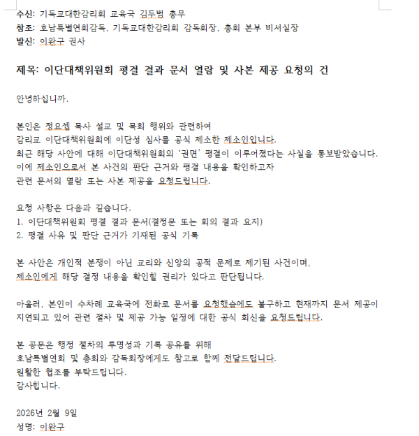 평결문을 숨기는 감리교단, 무엇이 무서워서일까?