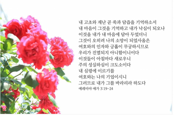 이것들이 아침마다 새로우니 주의 성실하심이 크시도소이다(예레미아애가 3장 19-23)