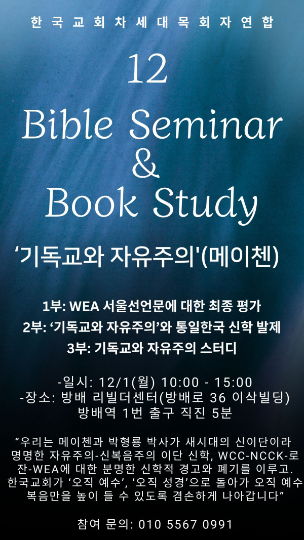 12월 1일 바이블세미나 개최…"반성경적 WEA 서울선언" 강력 경고